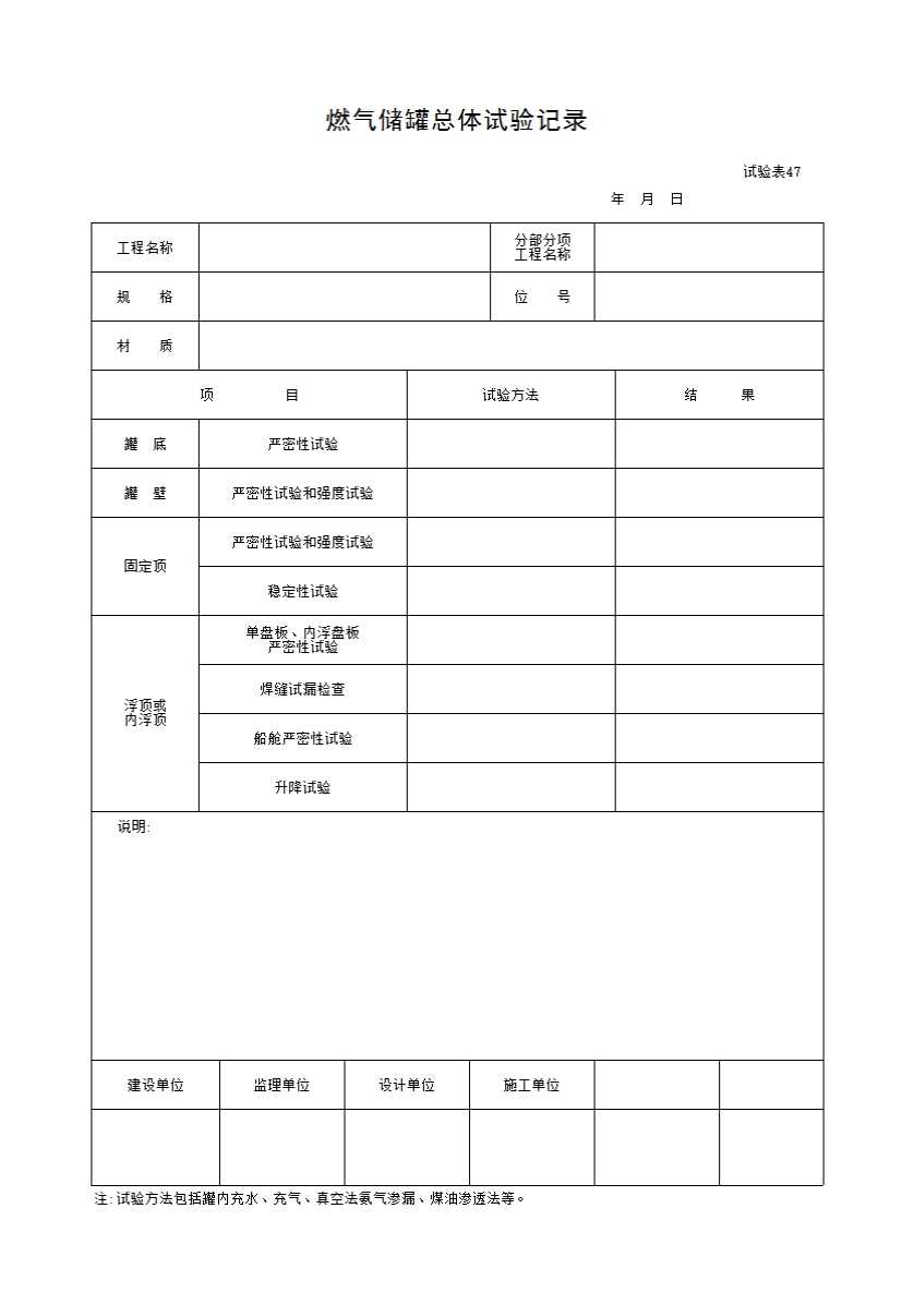 试验表47 燃气储罐总体试验记录