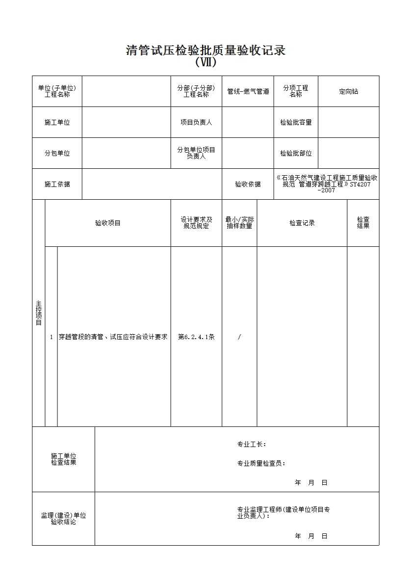 表格名称:清管试压检验批质量验收记录(Ⅶ)