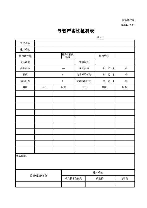 (2019版)湖南省市政基础设施工程技术资料统一用表