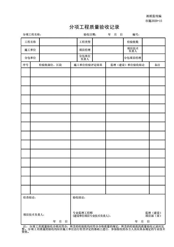湖南省市政基础设施工程竣工验收技术资料统一用表(2020版)