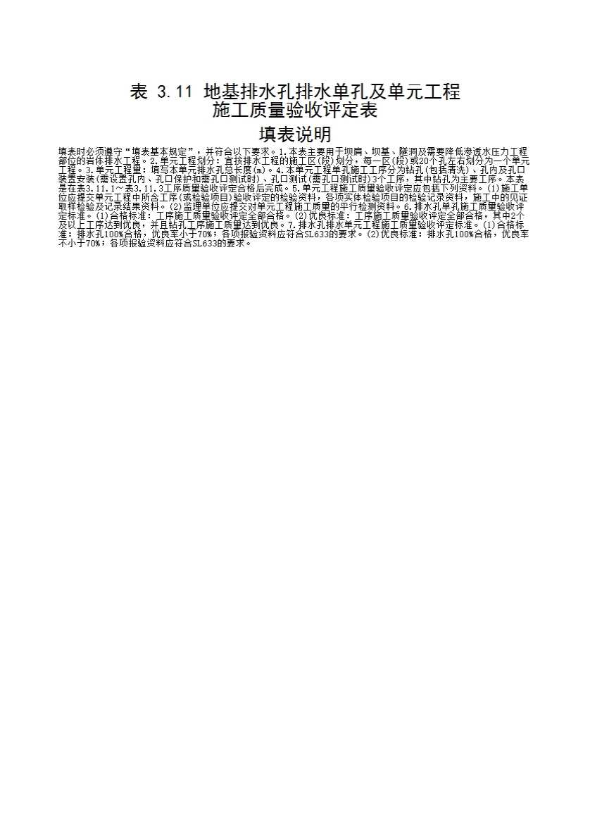 表格名称:表3.11 地基排水孔排水单孔及单元工程施工质量验收评定表