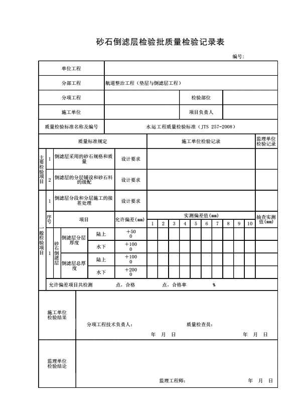 表格名称:砂石倒滤层检验批质量检验记录表