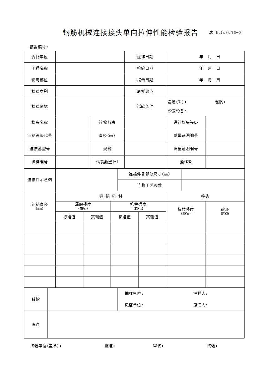 表K.5.0.10-2 钢筋机械连接接头单向拉伸性能检验报告