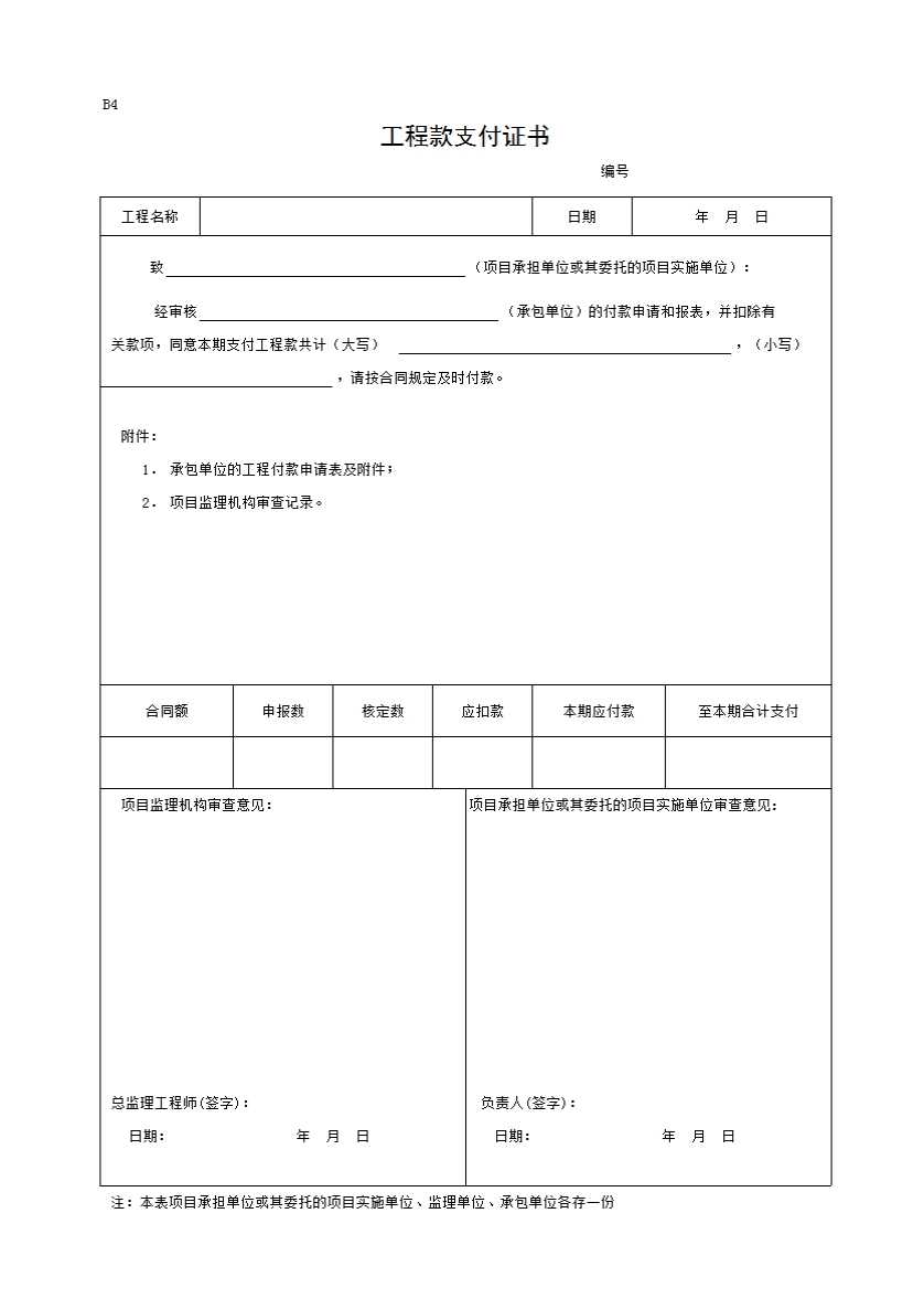 B4 工程款支付证书