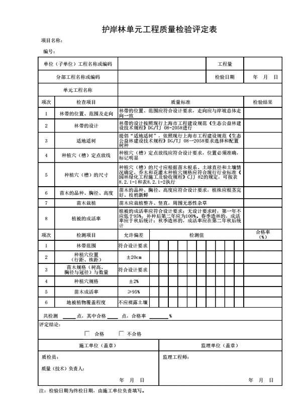 护岸林单元工程质量检验评定表