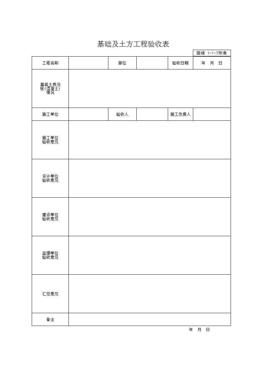 表格名称:附表 基础及土方工程验收表