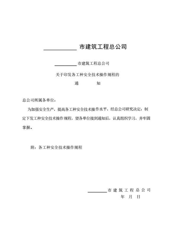 ----市建筑工程总公司关于印发各工种安全技术操作规程的通知