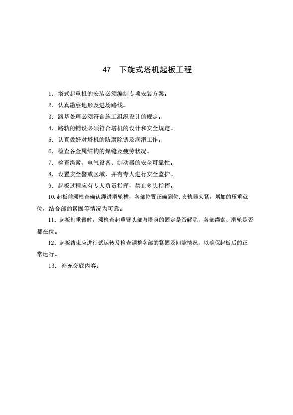 表格名称:47 下旋式塔机起板工程