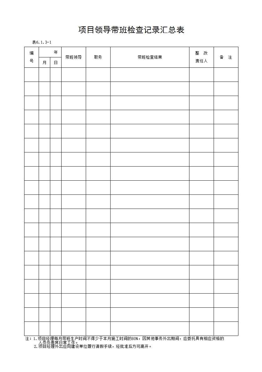 表格名称:6.1.3-1 项目领导带班检查记录汇总表