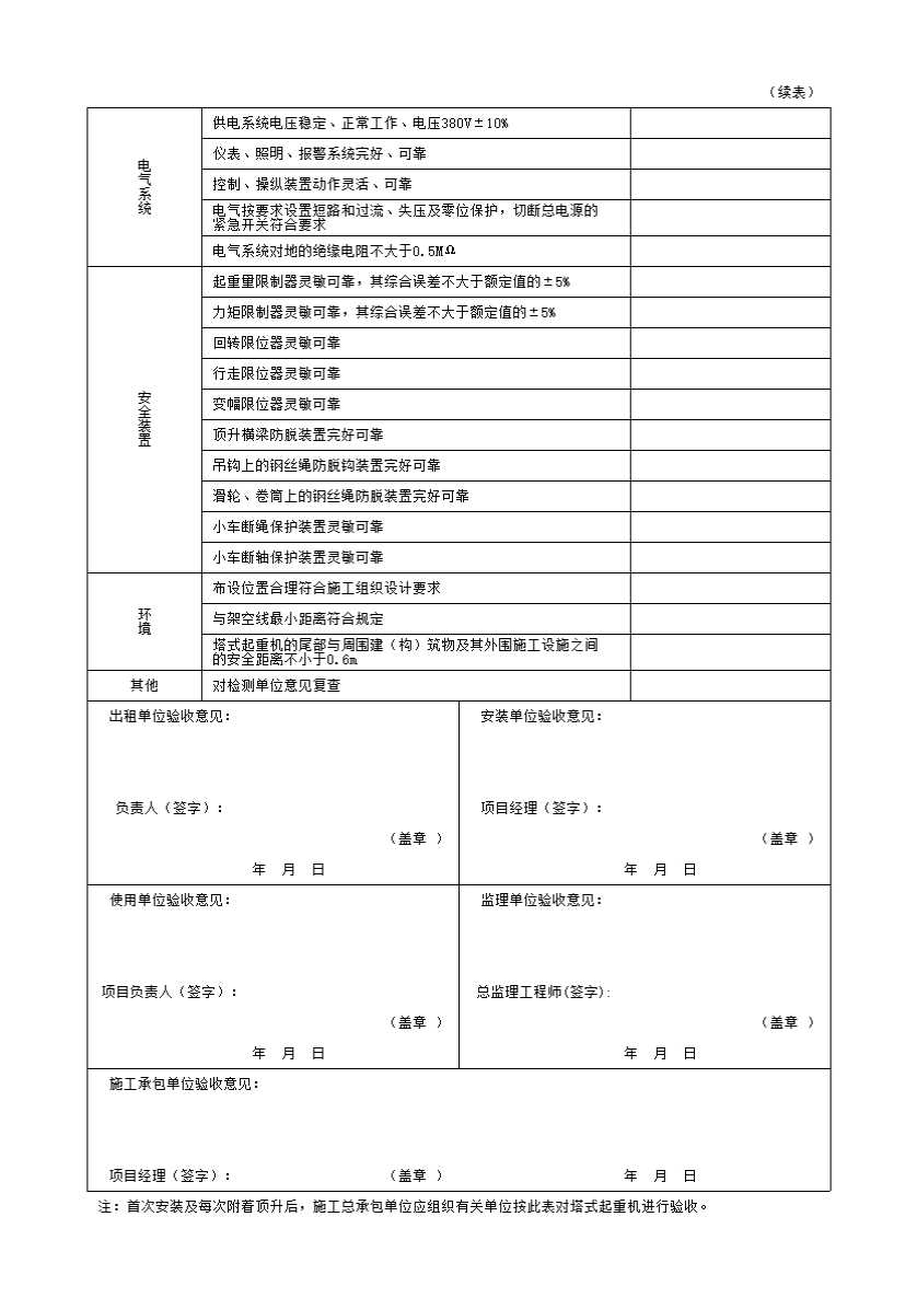 表格名称:8.1.8.1-7 建筑施工起重机械(塔式起重机)安装验收记录表