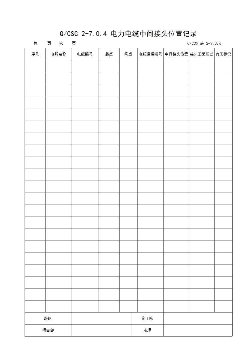 QCSG 表 2-7.0.4 电力电缆中间接头位置记录