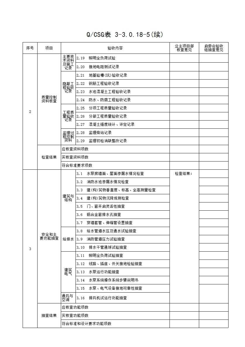 QCSG 表 3-3.0.18-5 水泵房与水池、消防小间 单位(子单位)工程质量验收与评定记录表