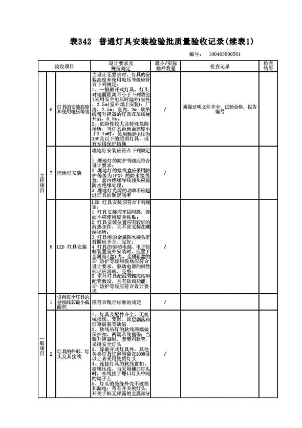 表格名称:100403000501 普通灯具安装检验批质量验收记录