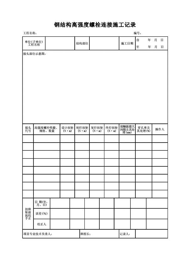 钢结构高强度螺栓连接施工记录