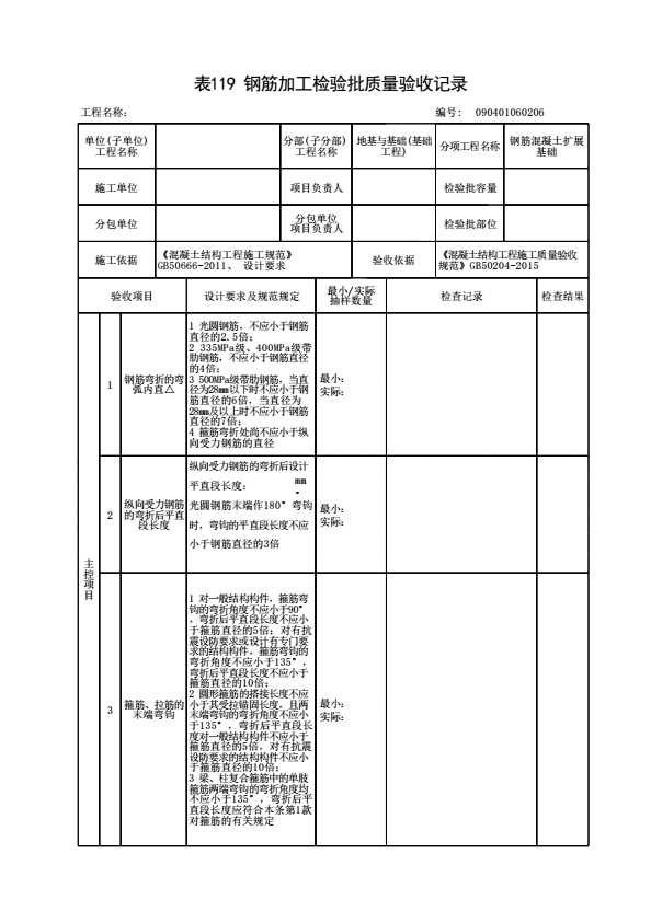 表格名称:090401060206 钢筋加工检验批质量验收记录