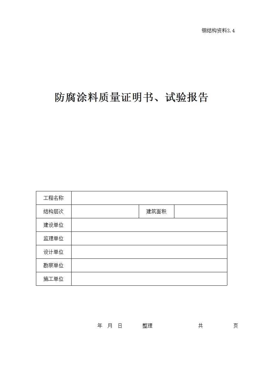 表格名称:防腐涂料质量证明书、试验报告