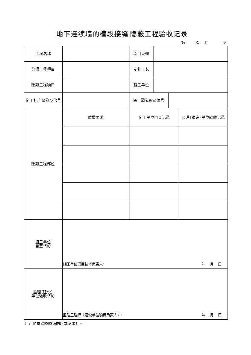 表格名称:地下连续墙的槽段接缝隐蔽工程验收记录