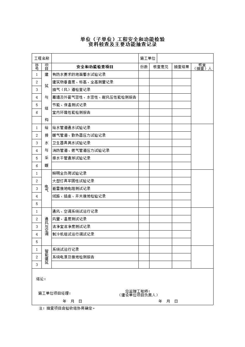 表格名称:单位(子单位)工程安全和功能检验