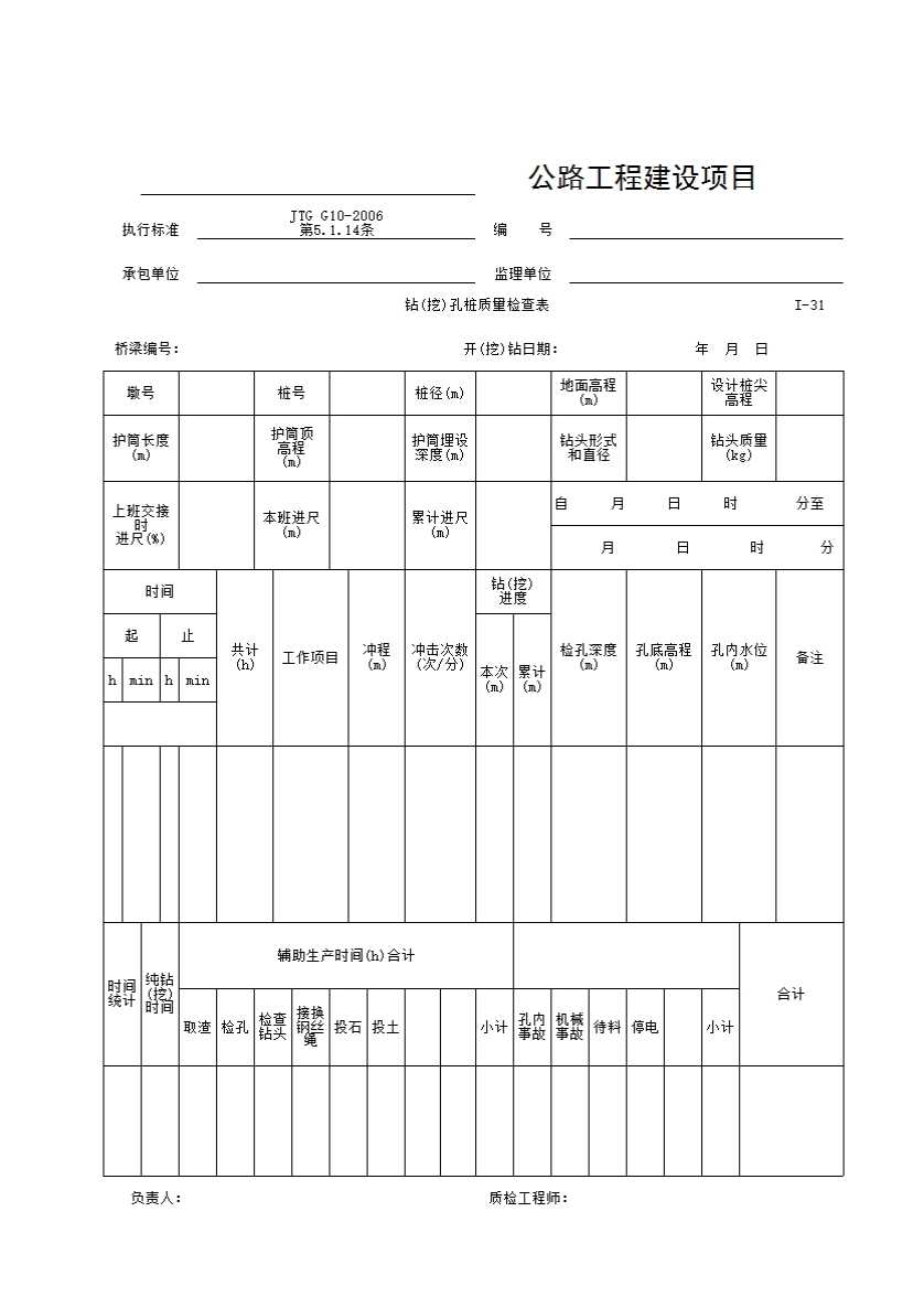 表格名称:I-31表 钻(挖)孔桩质量检查表