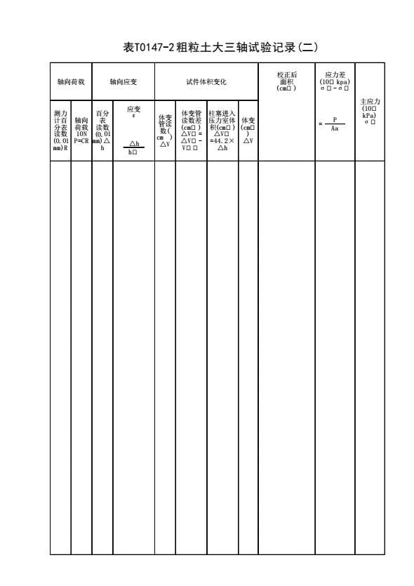 表格名称:表T0147-2 粗粒土大三轴试验记录(二)