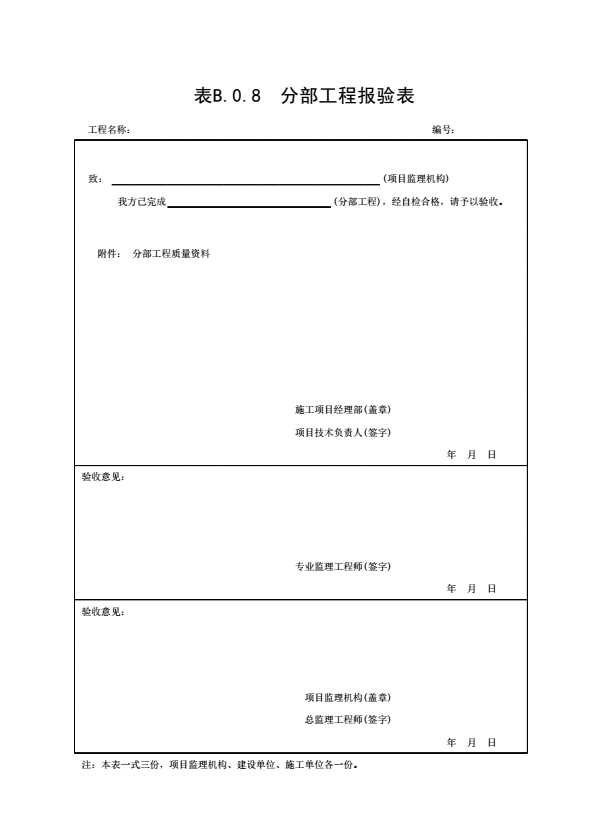 表格名称:表B.0.8 分部工程报验表