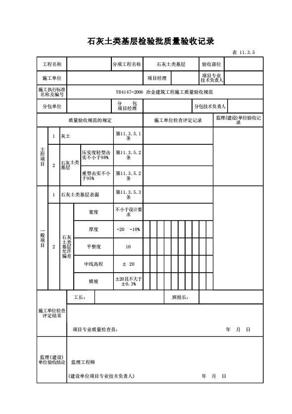表格名称:表11.3.5 石灰土类基层检验批质量验收记录