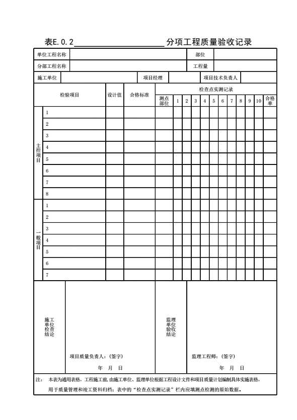 表格名称:表E.0.2 ______分项工程质量验收记录