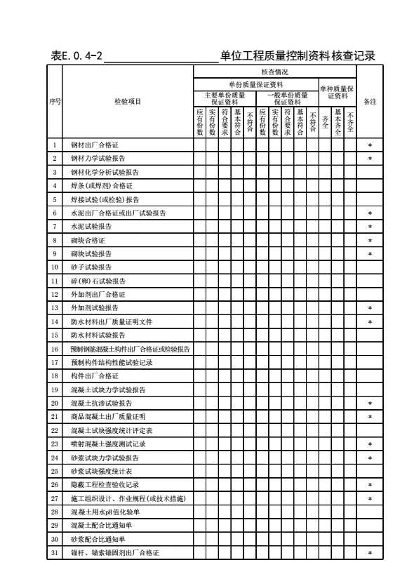 表E.0.4-2 ______单位工程质量控制资料核查记录