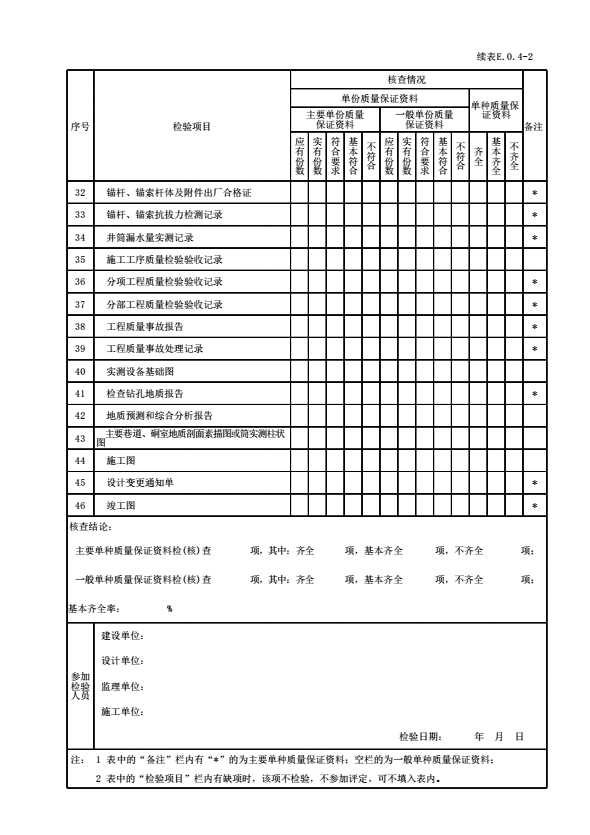 附录E 冶金矿山井巷工程质量验收记录( 规范性附录)