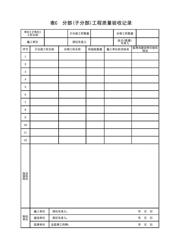 表格名称:表C分部(子分部)工程质量验收记录
