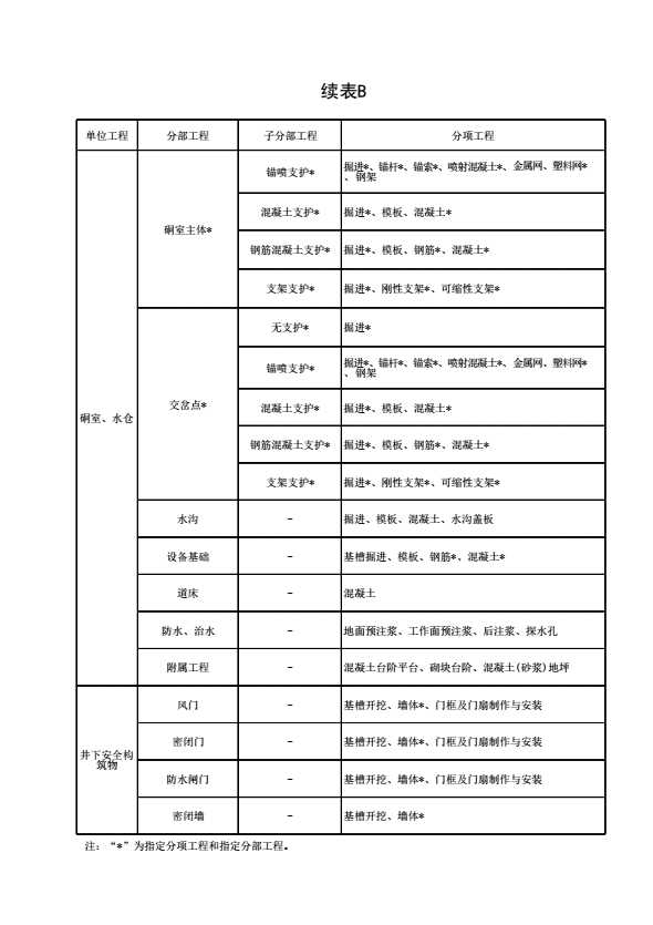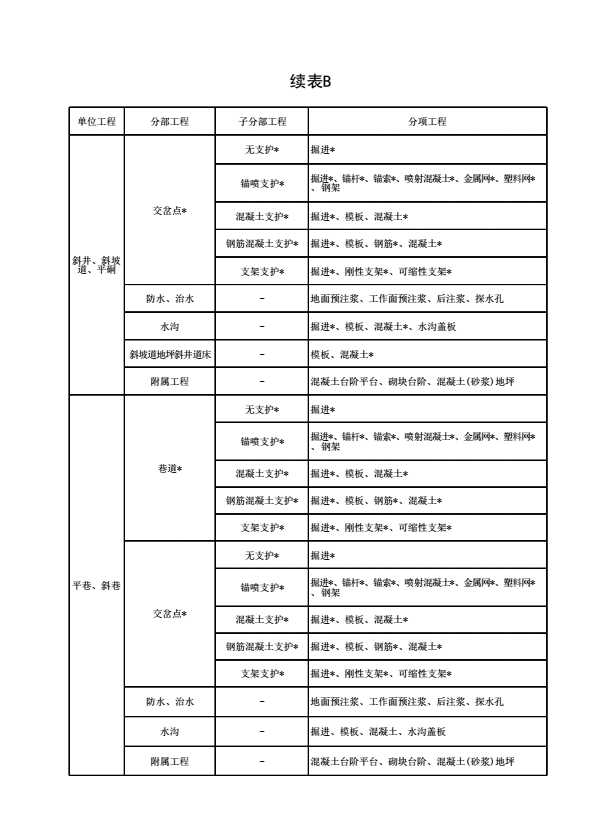 表B 单位工程、分部(子分部)工程、分项工程的划分