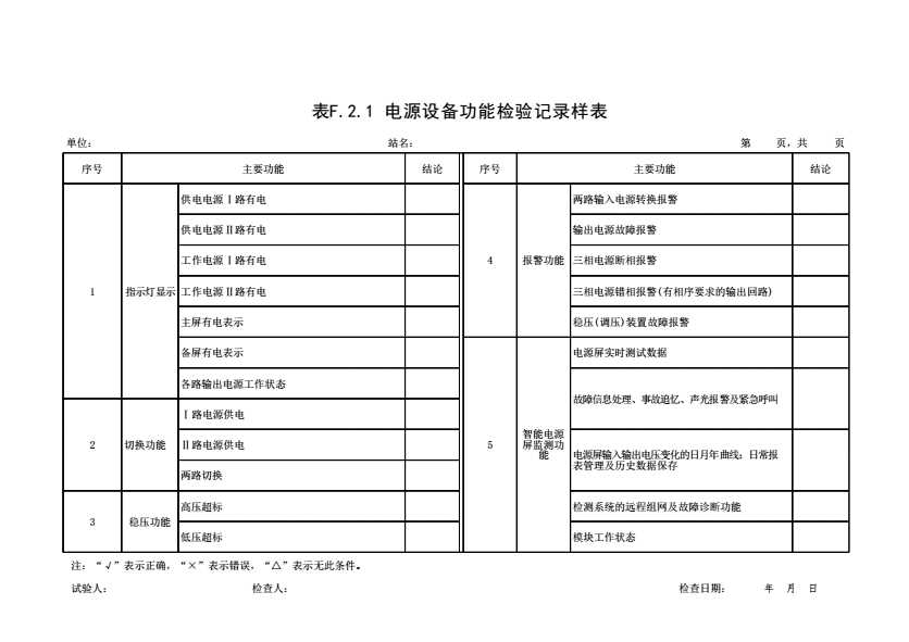 表格名称:表F.2.1 电源设备功能检验记录样表