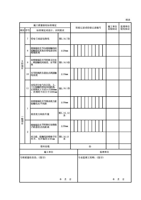 表格名称:G10020307 悬挂调整检验批质量验收记录表