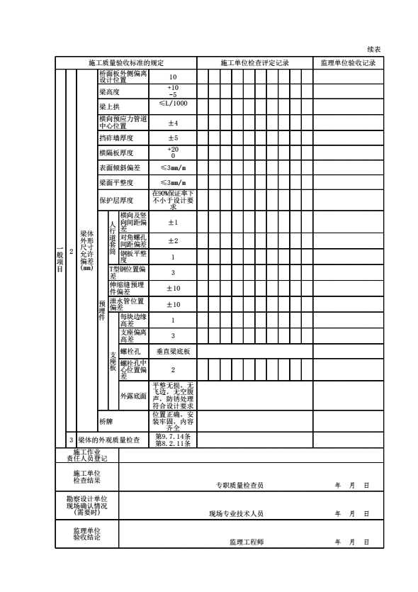 表格名称:03011802 梁段拼装检验批质量验收记录