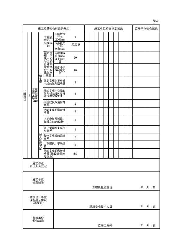 表格名称:03011804 支座检验批质量验收记录