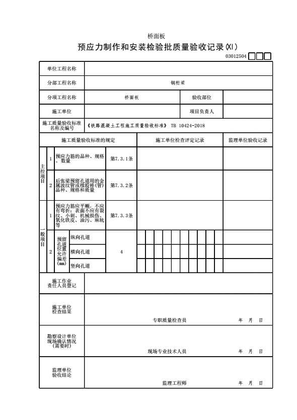 表格名称:03012504 预应力制作和安装检验批质量验收记录(Ⅺ)