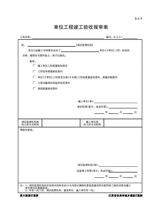 江苏省建设工程监理现场用表【第六版修订版】2020年12月1日执行