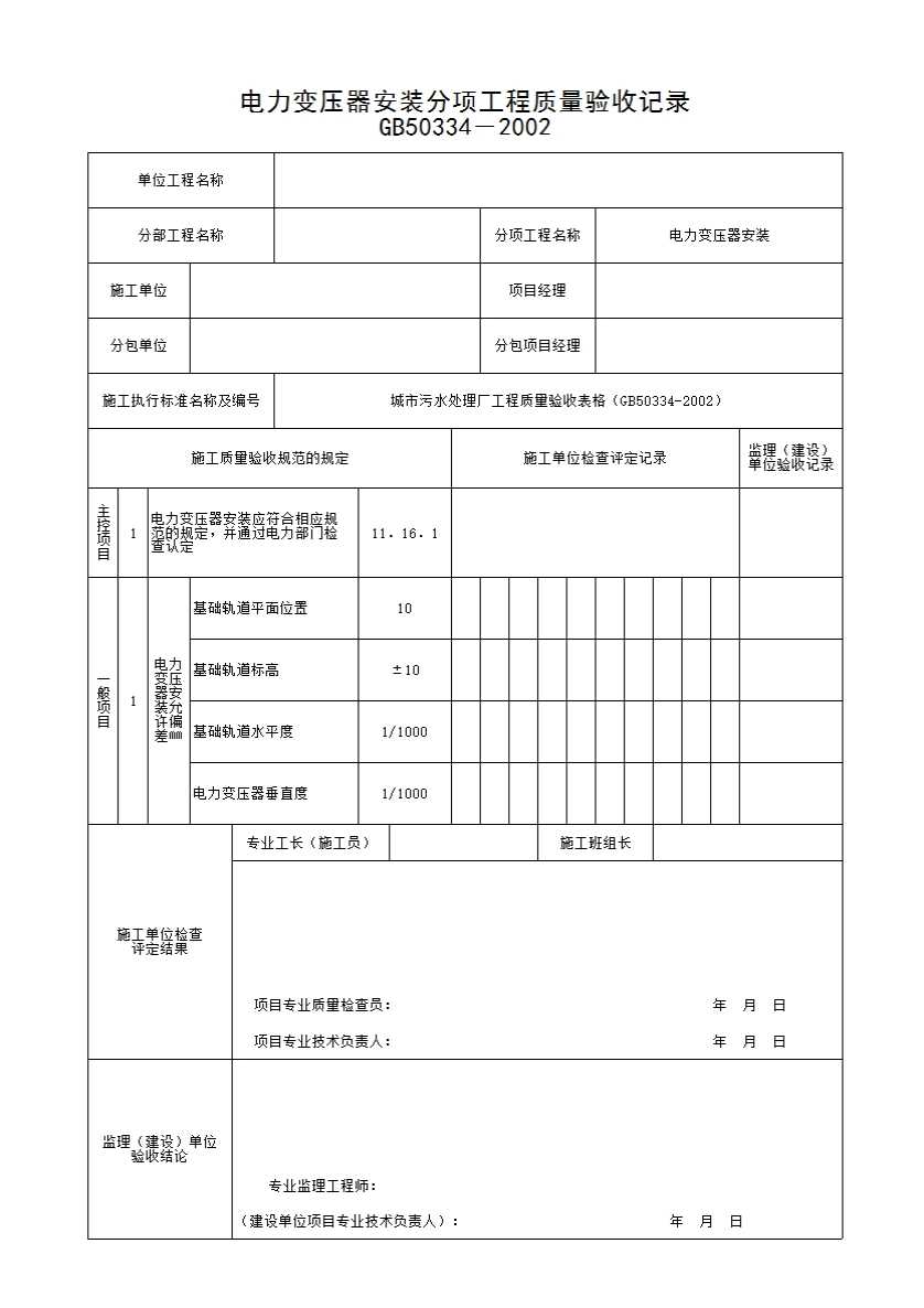 表格名称:16 电力变压器安装分项工程质量验收记录