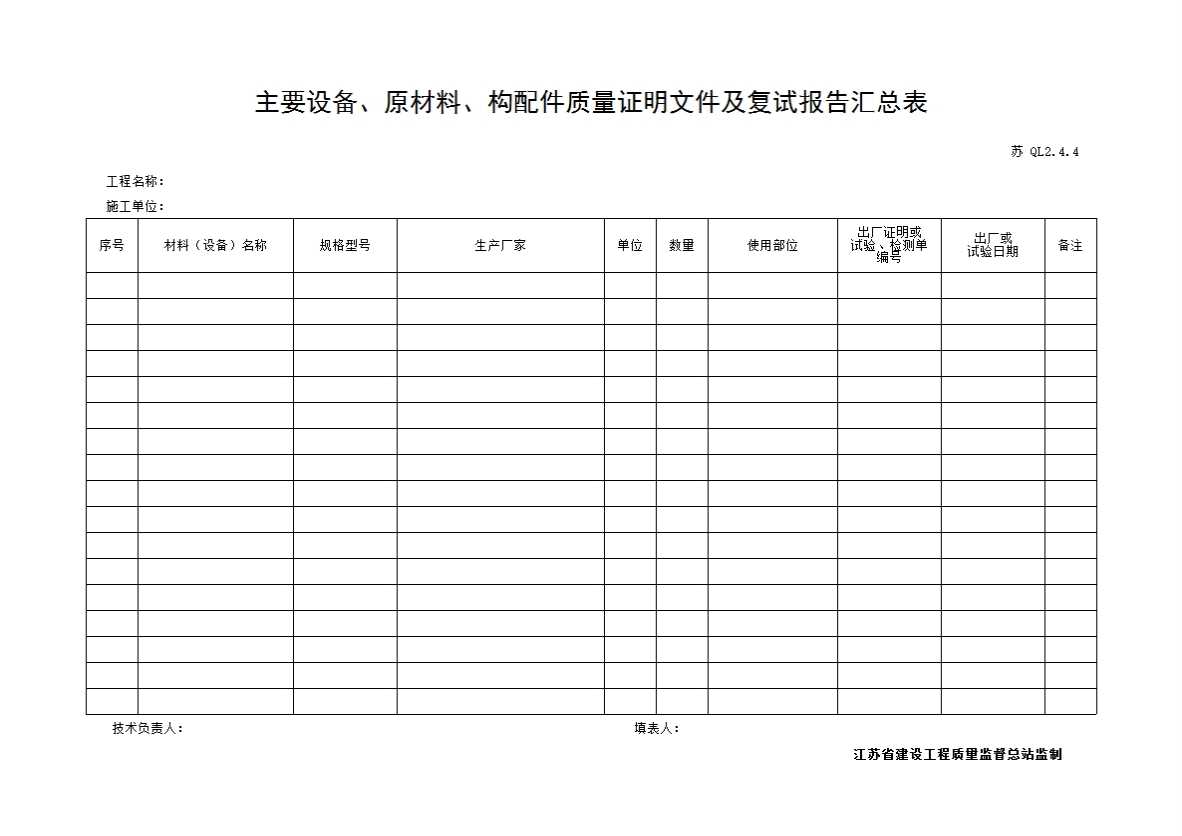 表格名称:QL2.4.4 其他材料复验报告汇总表
