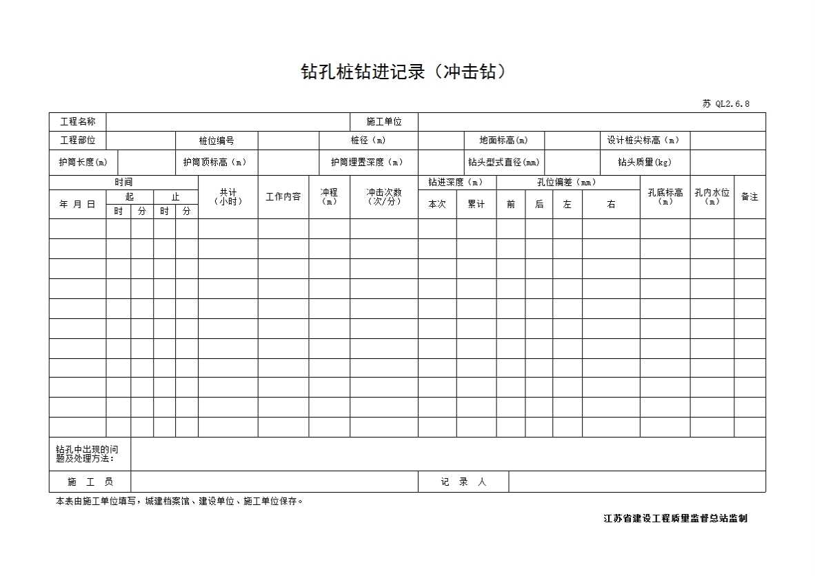 QL2.6.8 钻孔桩钻进记录(冲击钻)