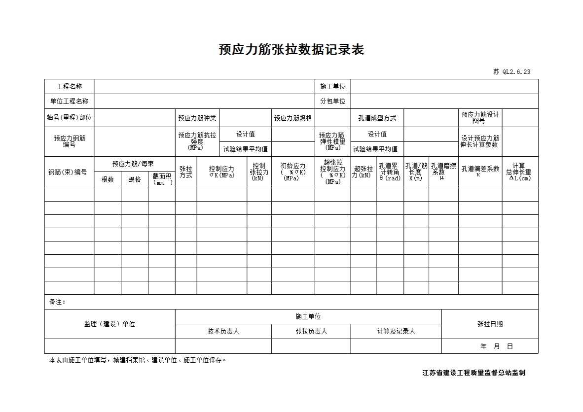 表格名称:QL2.6.23 预应力筋张拉数据记录表