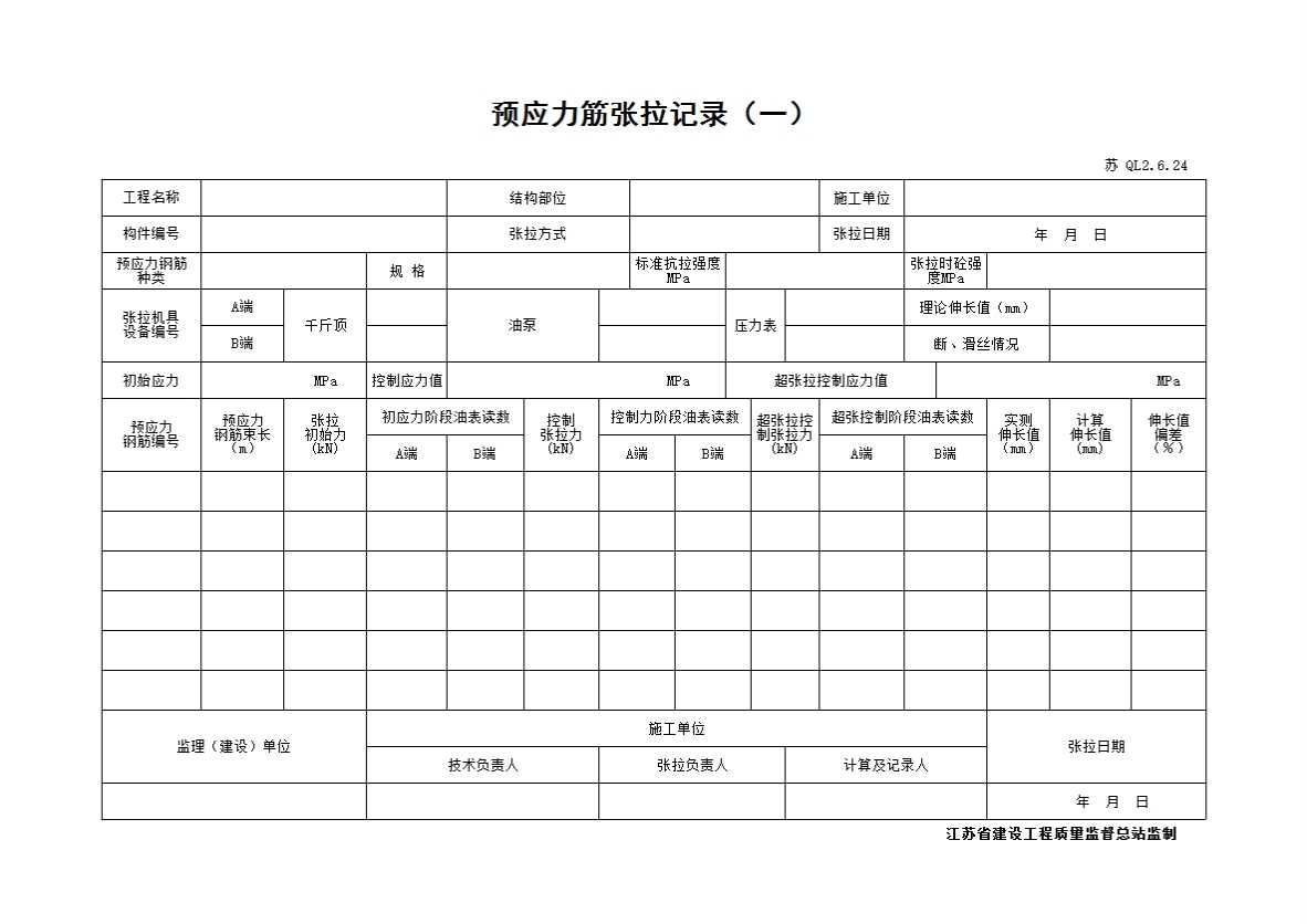 表格名称:QL2.6.24 预应力筋张拉记录(一)