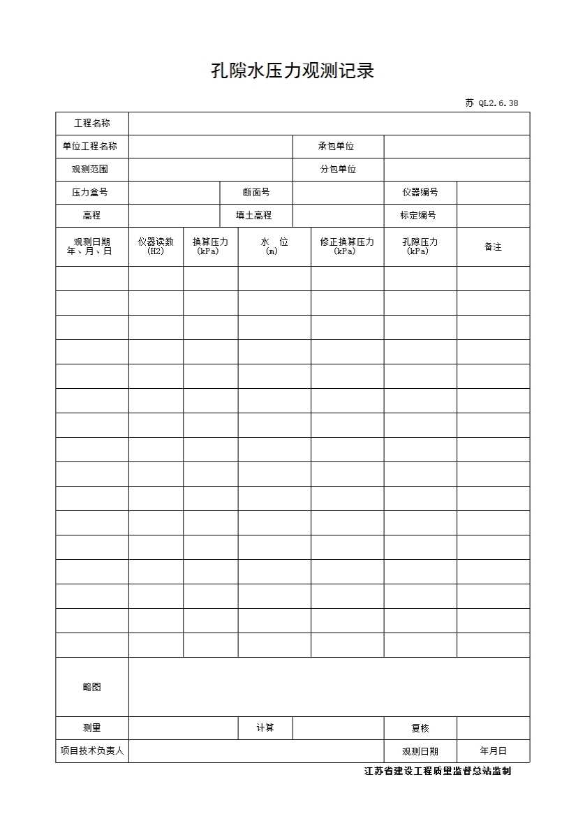 表格名称:QL2.6.38 孔隙水压力观察记录