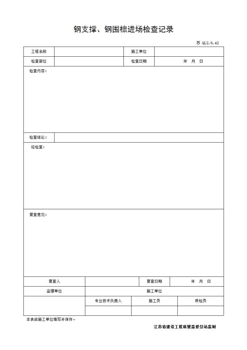表格名称:QL2.6.42 钢支撑进场验收记录
