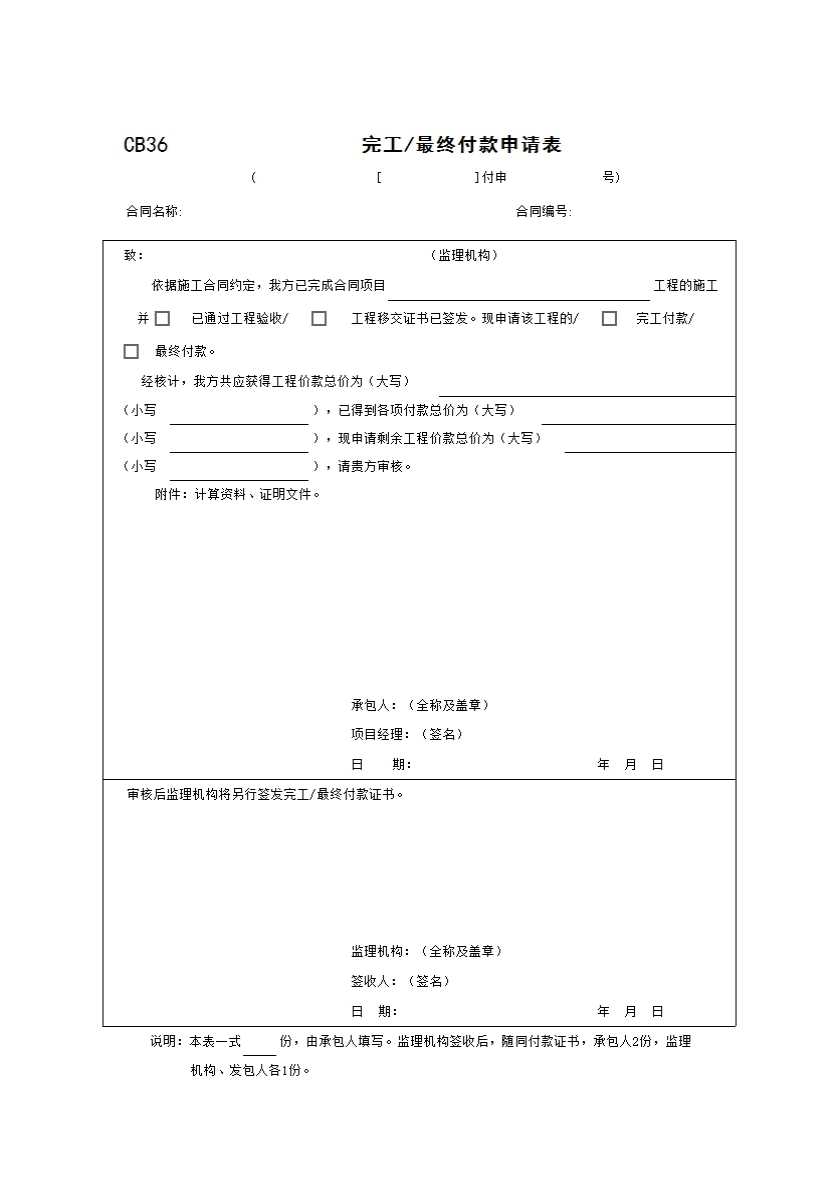 CB36完工/最终付款申请表