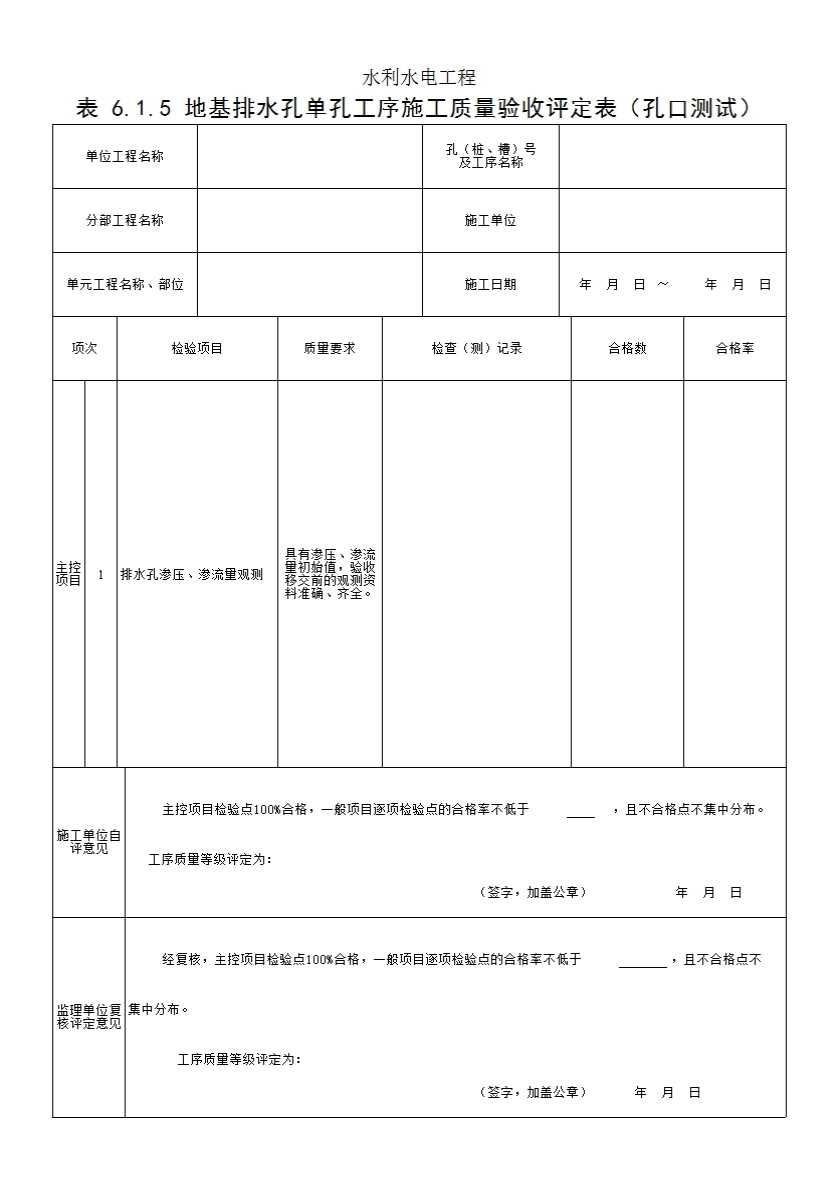 表格名称:表 6.1.5 地基排水孔单孔工序施工质量验收评定表(孔口测试)