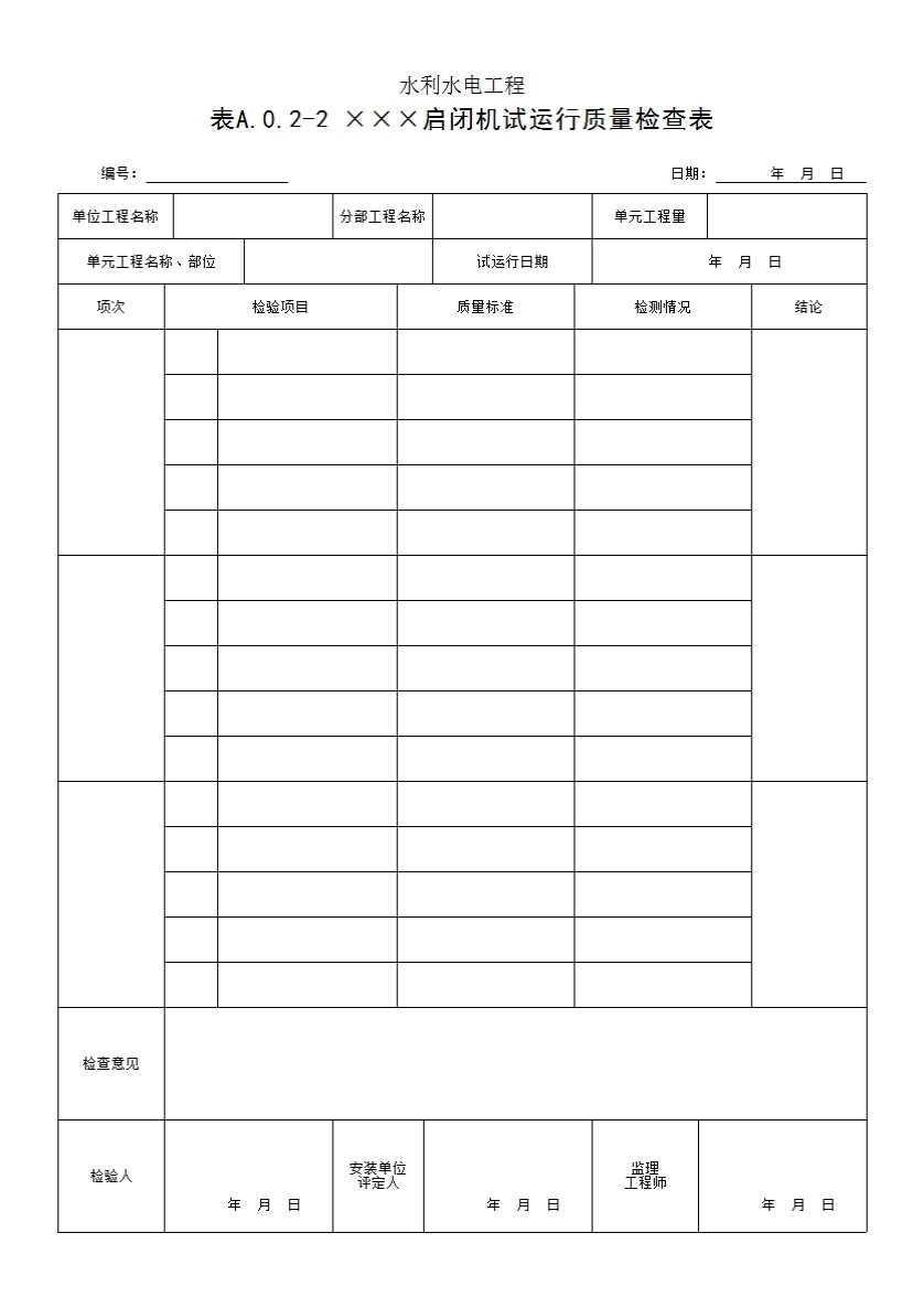 表格名称:表A.0.2-2 ×××启闭机试运行质量检查表