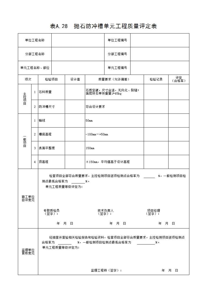 表格名称:表A.28 抛石防冲槽单元工程质量评定表
