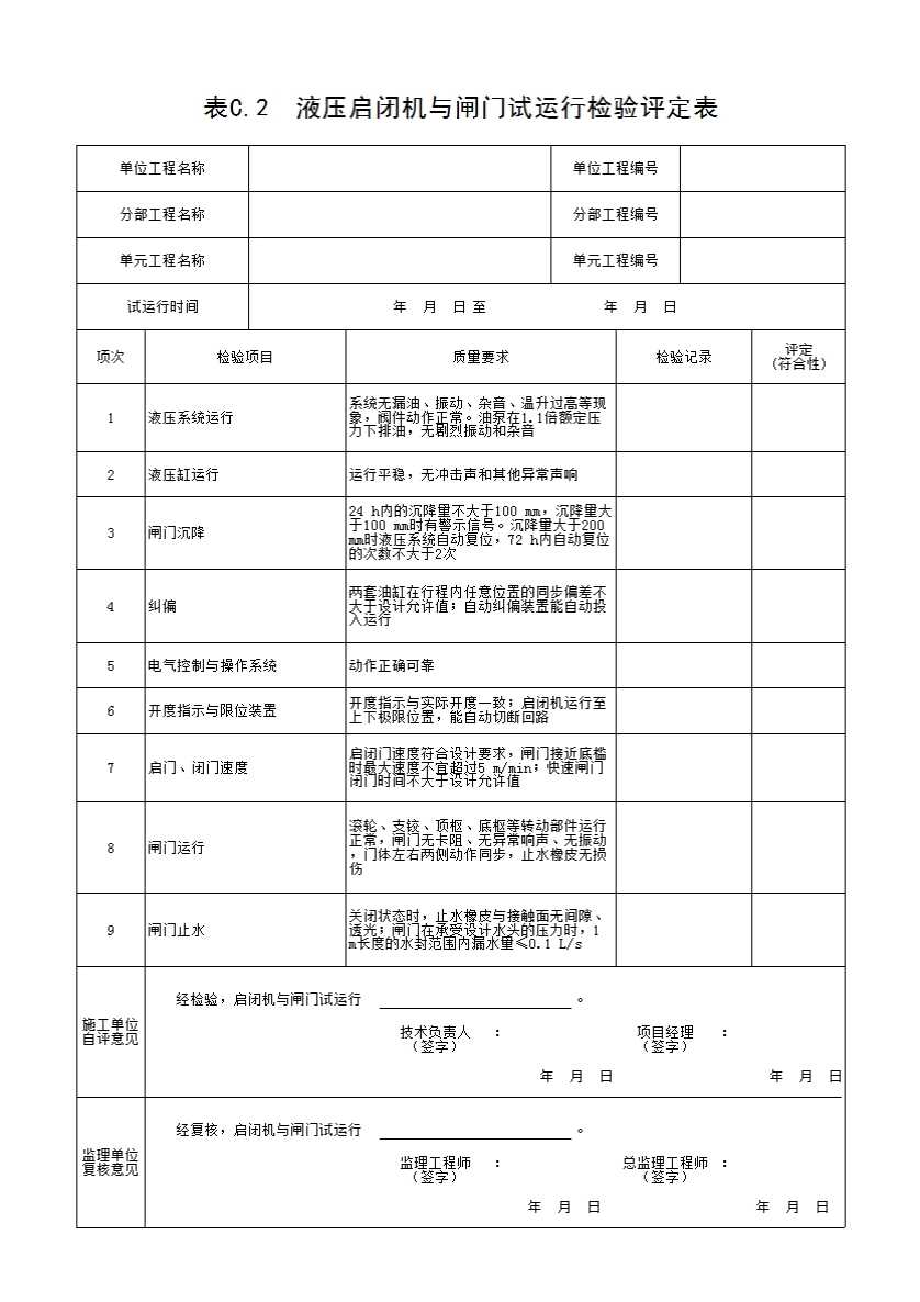 表格名称:表C.2 液压启闭机与闸门试运行检验评定表