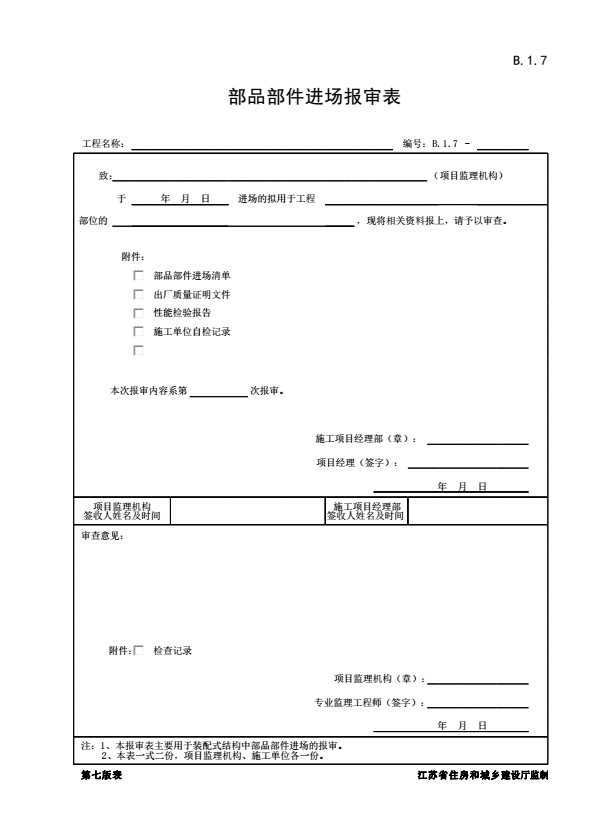 B.1.7 部品部件进场报审表